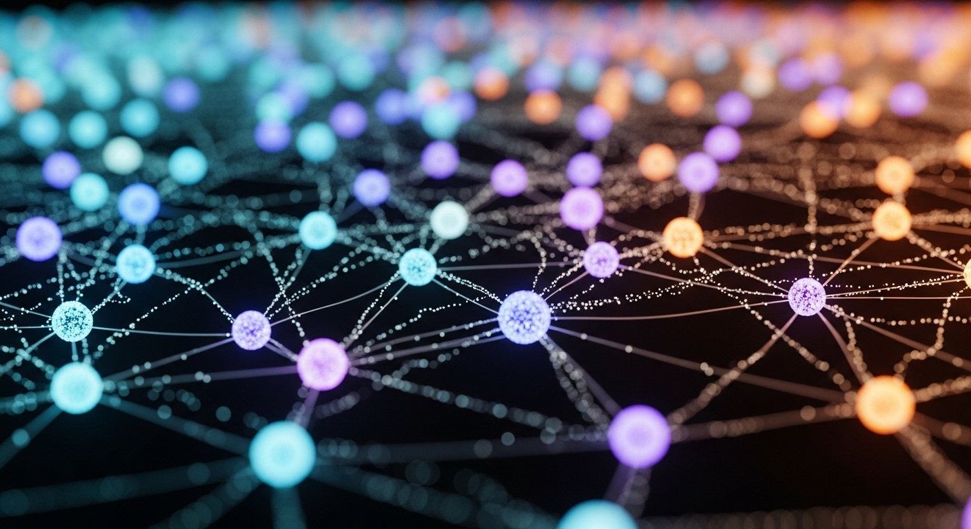 Abstract 3D visualizations representing neural network activations as nodes and flowing connections. Emphasis on rhythm, color, and motion.